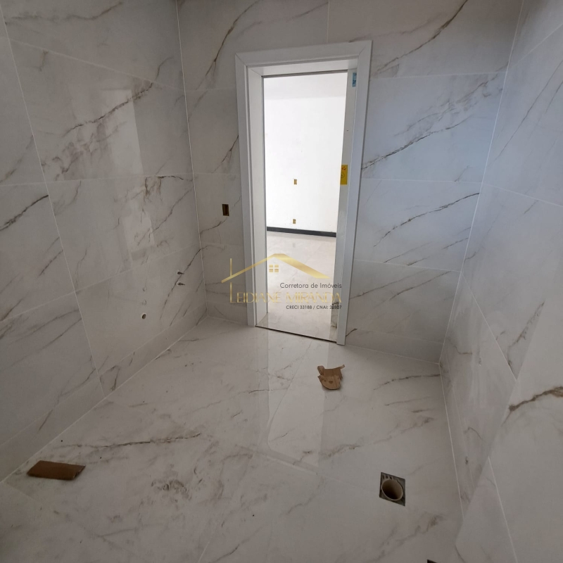 Banheiro social com acabamento impecável.